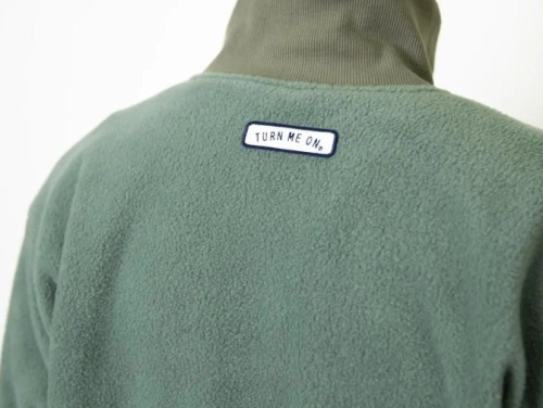良質のフリースに風をシャットアウトする襟のリブ仕様。